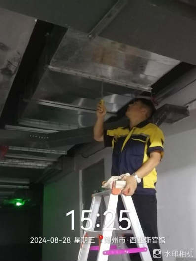 十七、为2024年秋季开学做好空调热水保障服务,能源服务部组织员工检修中水阀门、冷却塔、空调及热水机组等设备,更好的为广大师生提供稳定的空调热水服务。