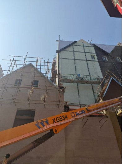 三、丹麦小镇工程:周边楼宇雨水管道开挖;外墙真石漆施工;一层餐厅装修;临街商铺室内平整地坪。