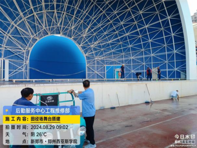 一、圆满完成2024迎新工作:迎新帐篷搭建、迎新点布置、维修人员现场值守保障、军训舞台搭建、环境卫生保障等工作。