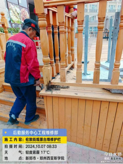 十六、宫馆项目开展了公区照明维修、防火门闭门器维修、漏水点维修后管道安装、园区地面冲刷、公区卫生清洁、园区绿化除虫、帮业主搬东西、物业服务满意度调查等工作。