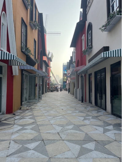 二、丹麦小镇工程:一层餐厅装修完成;外墙完成,进行修补;地面石材完成90%;景观绿化种植完成,云朵造型完成50%。