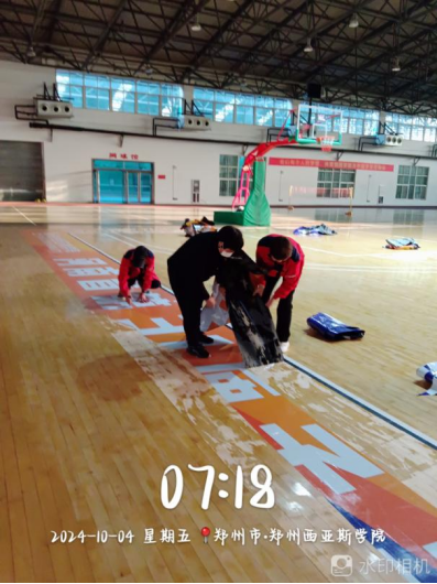 十五、对校园环境进行了CUBA地面除胶、楼宇玻璃清洁、车棚清洁、垃圾收集点围栏及地面污渍冲洗、商业街冲洗、除草、高空除尘、绿化带落叶清理、水系清洁、运动场地清洁、森林公园白色垃圾捡拾、五餐三楼保洁等工作。