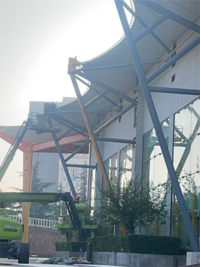 四、综合馆索膜结构修复工程:钢结构安装完成。