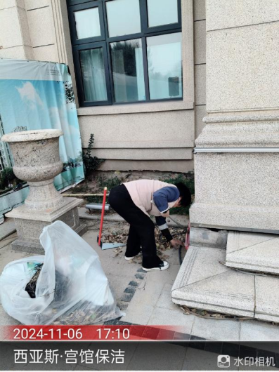 十二、对校园环境进行了地面冲洗、户外广告牌擦拭、绿化带垃圾清理、落叶清理、水系清洁、外环公共卫生间清洁、五餐三楼精细保洁、综合体育馆招聘会环境保障等工作。