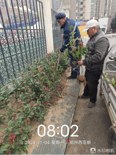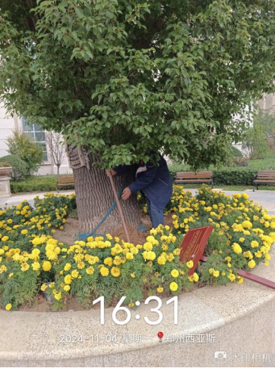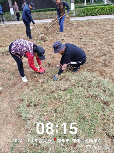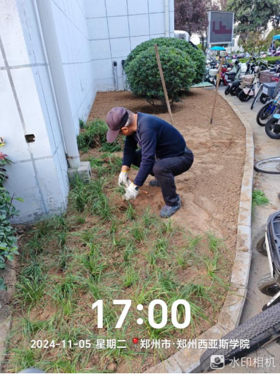十一、对校园绿化进行了树木简介牌安装、北大门草坪播撒草籽区域整地、大树涂白、绿化防护围栏制作安装、栽种麦冬、浇水养护、行政楼西侧草坪整改、移苗补苗等工作。