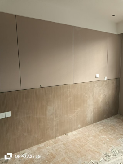 二、丹麦小镇工程:二层护墙板完成90%,橱柜安装完成90%;三层橱柜进场开始安装。
