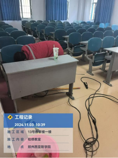 四、高中教室改造:电线拆除完成90%;墙面铲除一层已全部完成,四层南侧已完成,四层西侧墙裙油漆还未铲除,其余已完成;地面膨胀管打磨三层已完成四层开始施工。