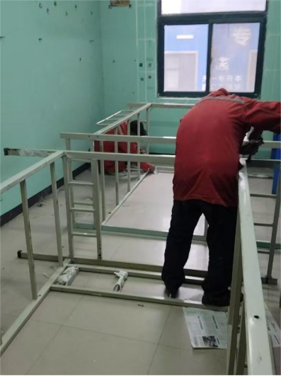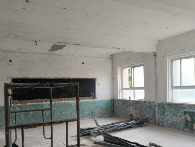 五、1号教学楼装修改造工程:一层资料室拆除已完成,木工完成50%。