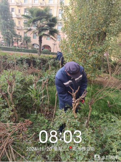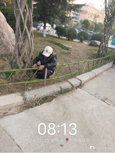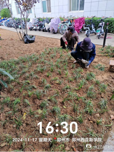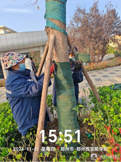 十五、对校园绿化进行了大树缠过冬保温粘布、滴灌带铺设、绿化防护围栏制作安装、苗木栽种、苗木修剪、落叶清理、杂草清理、校区施肥等工作。