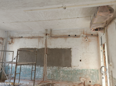 四、高中教室改造:一层办公室二遍腻子完成,今天开始打磨;2-4层教室拆除完成,其余未移交办公室未施工;教室管线及点位样板房完成,墙地面开槽完成10%。