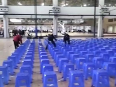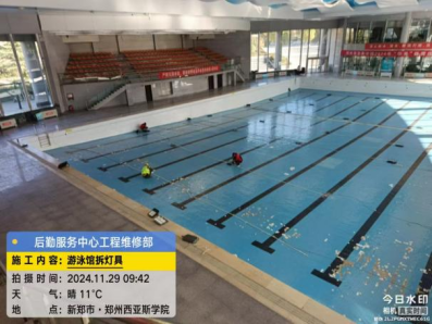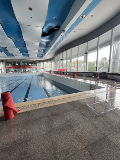 六、游泳馆改造项目:卫生间拆除完成60%;大厅顶部开始拆除。