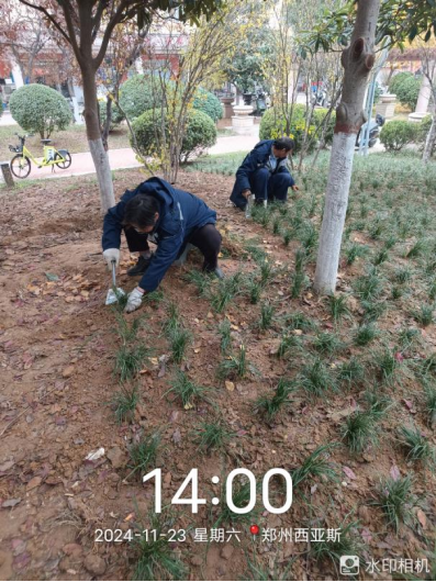 十六、对校园绿化进行了滴灌带安装、播撒化肥、麦冬分栽、苗木修剪、苗木移栽、清理断枝干枝、落叶清理、杂草清理等工作。