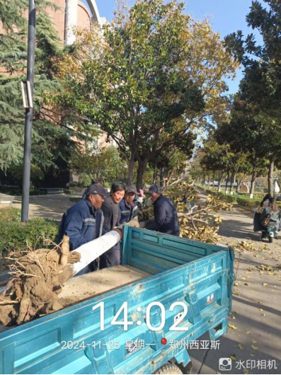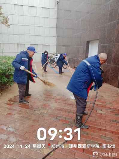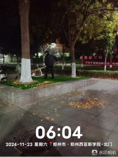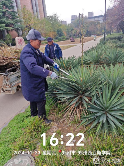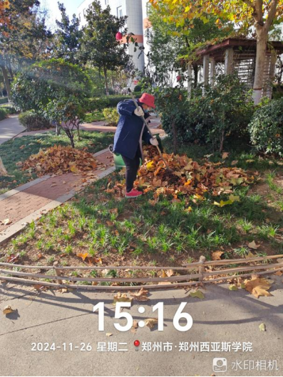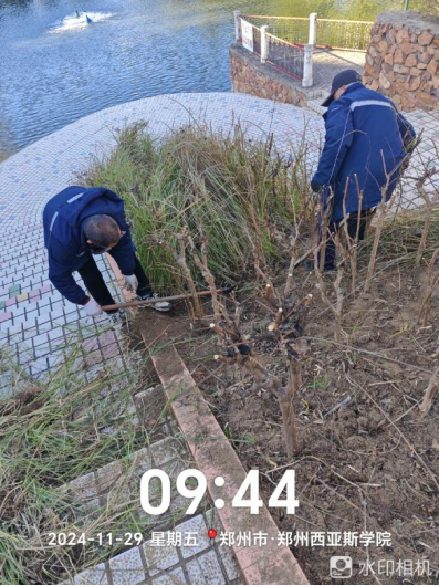 十七、对校园环境进行了垃圾清运、淤泥清理、高空除尘、清扫落叶、水系打捞、外环卫生间清洁、五餐三楼活动保障、等工作。