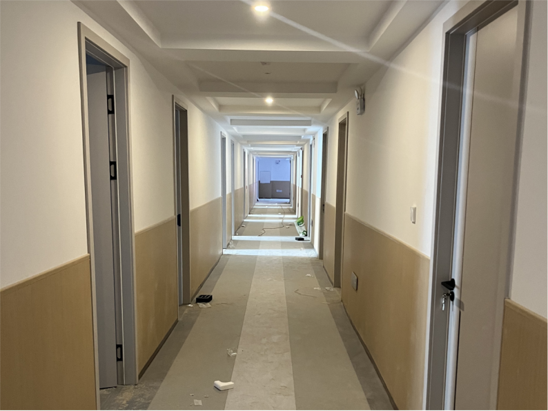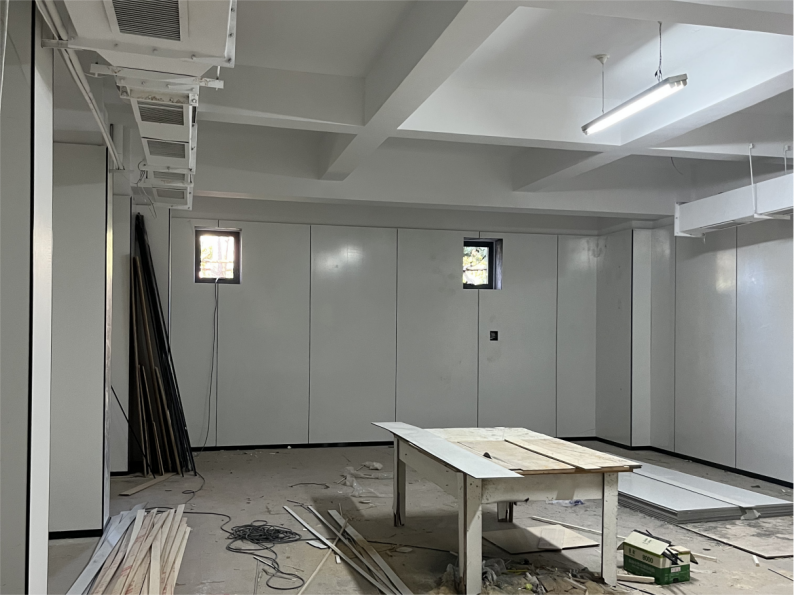 八、1号教学楼装修改造工程:一层资料室成品板安装到位;窗户安装单位;乳胶漆完成。