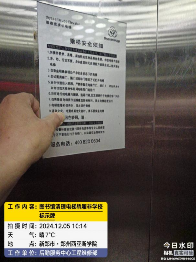 九、清理电梯轿厢非我校标识牌。
