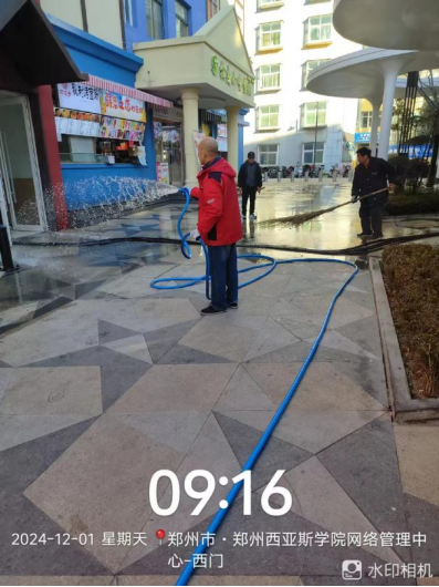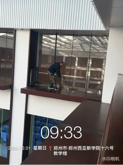 十八、对校园环境进行了16号楼挑檐清洁、19号楼玻璃清洁、别墅露天清洁、丹麦小镇冲洗、活动中心精细保洁、清理落叶、外环卫生间清洁等工作。