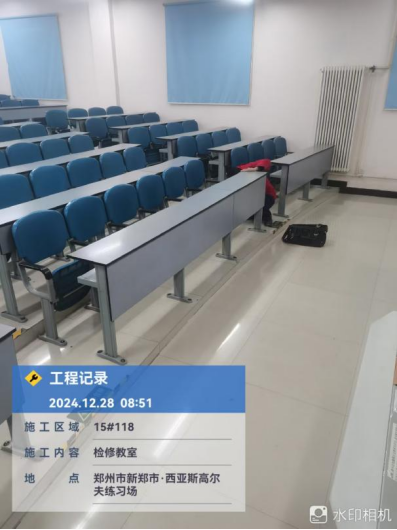 五、高中教室改造:一层大厅墙板安装完成;1-4层除未移交实验室、机房及办公室线槽未施工外其余已完成,灯具安装完成;2-4墙面白色涂料完成;运动地胶完成50%。