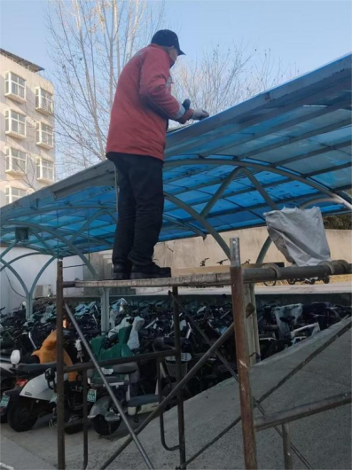 十六、对校园环境进行了16号楼玻璃清洁、CUBA玻璃幕墙清洁、雕塑冲洗、地面冲洗、驾校一期停车场清洁、捡拾白色垃圾、教学楼死角卫生清洁、垃圾桶擦拭、落叶清理、室外卫生间清洁等工作。