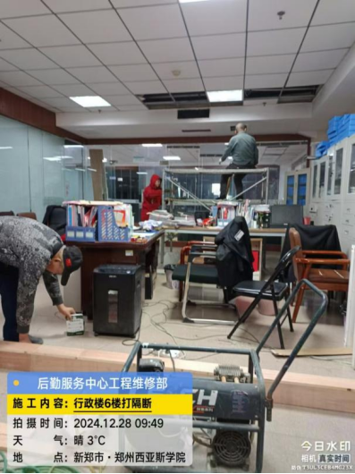 八、1号教学楼装修改造工程:拆除完成90%;修补教室乳胶漆;过道吊顶基层完成。