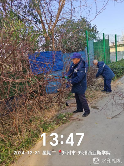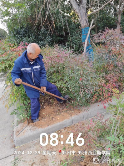 十五、对校园绿化进行了草花栽种区域翻地整地、绿化防护围栏修整、清理干支断枝落叶清理、清理砖块杂物、移苗补苗、乔灌木修剪等工作。