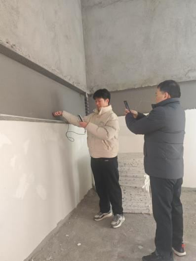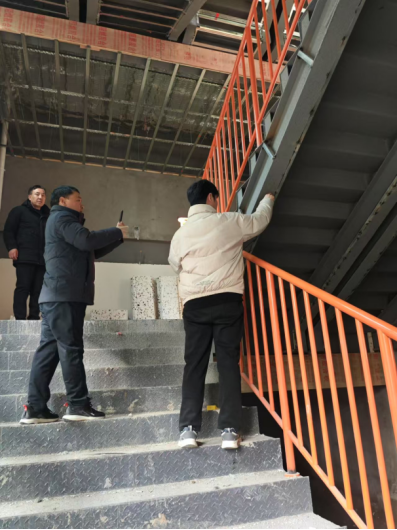 四、高中教室改造:三、四楼实验室踢脚线安装完成;一楼微机房墙裙批抗裂砂浆找平完成70%;拆除及安装原新能源风道完成。