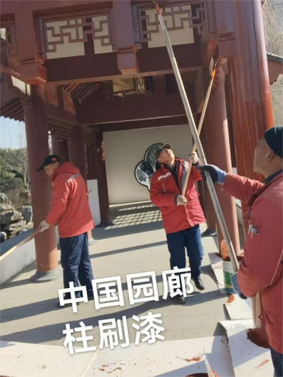 三、游泳馆改造项目:顶部网架刷漆完成80%;更衣室墙面石材完成80%;泳池防水完成。