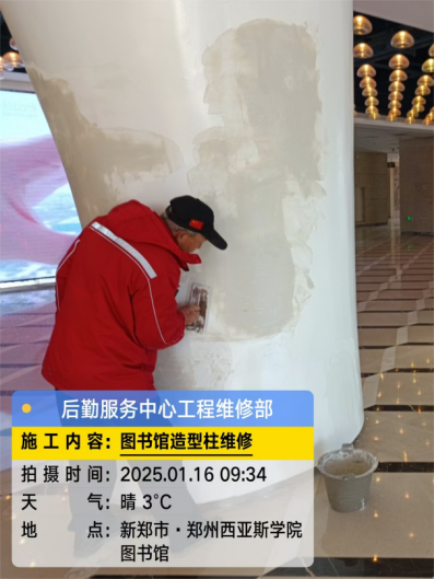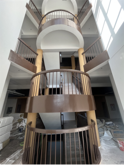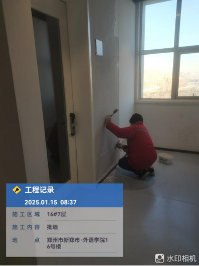 六、1号教学楼装修改造工程:公区乳胶漆完成80%;2-4层卫生间防水完成。