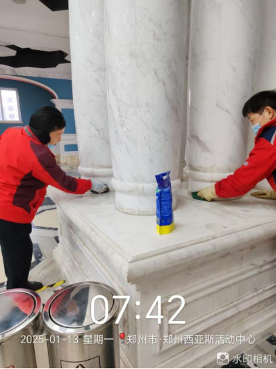 十三、宫馆项目开展了保洁水龙头维修更换、帮业主挂电视、车库污水泵排查、春联派送、张贴水费通知单、张贴电动自行火灾案例提醒、园区绿化灌溉、园区84消毒等工作。