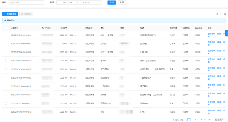 一、01月11日-01月17日17:00,客服部共接到145条报修并及时安排人员处理。