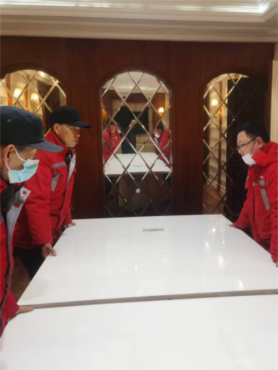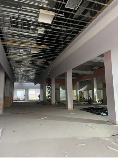 四、游泳馆改造项目:空调风道组装完成80%;更衣室VIP室墙面石材完成90%;泳池地砖已进场;大厅铝单板已下料。