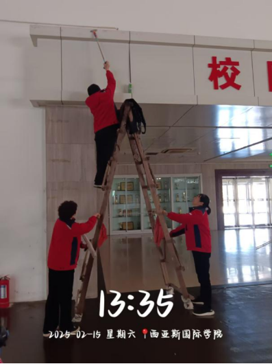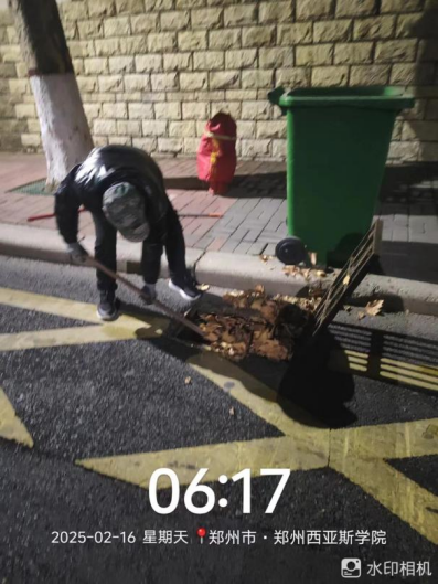 十七、对校园环境进行了15号楼1楼入口清洁、CUBA清洁、北4北5发书现场清洁、北水系清洁、墙面冲洗、东大门精细保洁、死角卫生清理、室内3米以下附属物清洁、雨水井清理、运动公园场地冲洗等工作。
