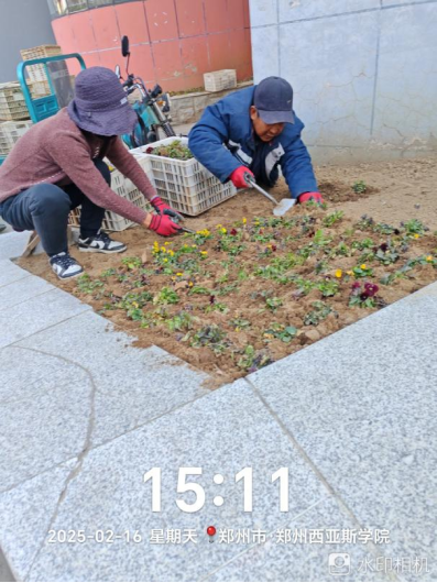 十六、对校园绿化进行了春季草花栽种、乔灌木修剪、干枝清理、清理老草花、日常浇水养护、移栽麦冬、移栽苗木、花箱栽种草花前整理、树坑整理等工作。