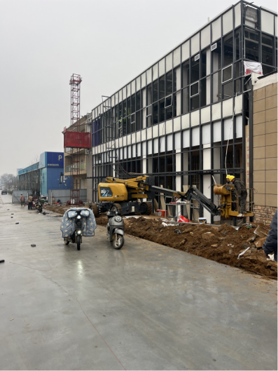 三、工程实训中心工程:一层大厅基层装修全部完成;空调设备打压完成;二层房间吊眉基层完成;室外主路混凝土浇筑完成。