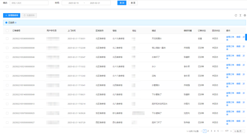 二、02月08日-02月14日17:30,客服部共接到1762条报修并及时安排人员处理。