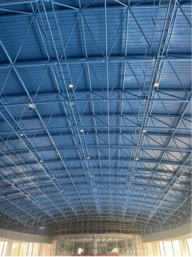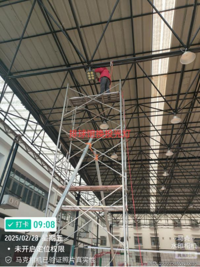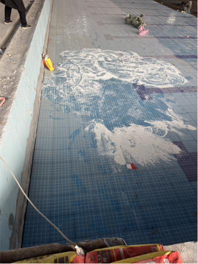 四、游泳馆改造项目:泳池上部灯光安装完成;空调风道完成50%;池底贴砖完成20%。