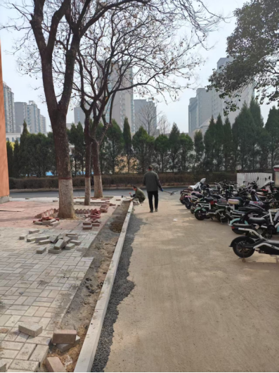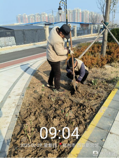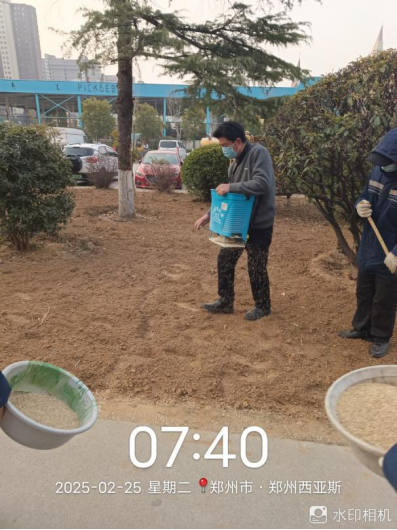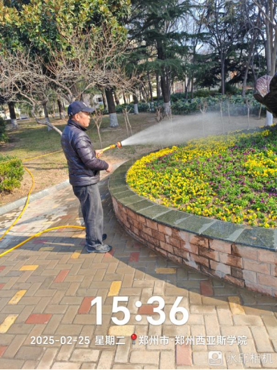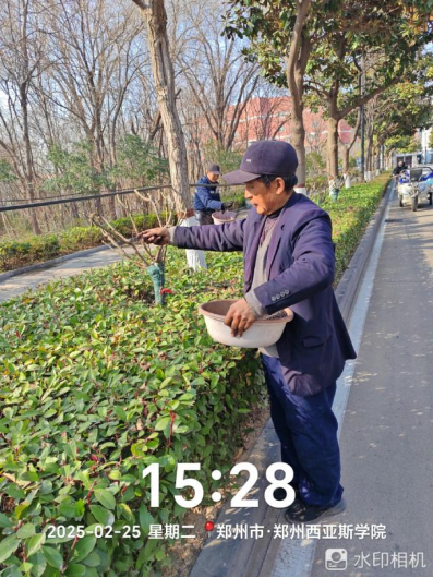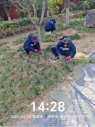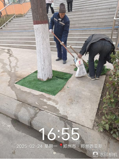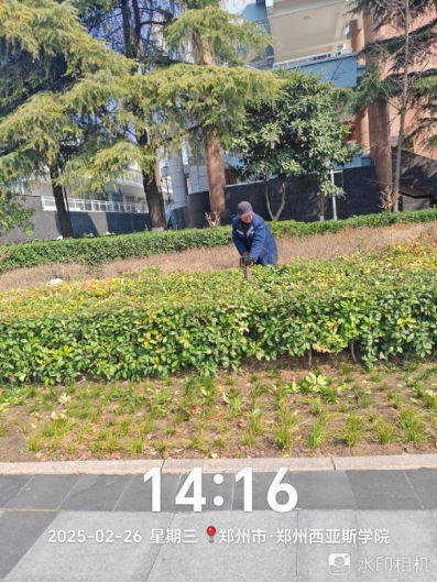 十四、对校园绿化进行了播撒草籽、播撒化肥、草花栽种、翻土整地、绿篱修剪、绿篱空缺区域补栽绿篱苗、麦冬栽种、清理树根、树坑粘贴草皮、日常浇水养护等工作。