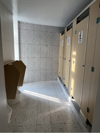 七、1号教学楼装修改造工程:公区乳胶漆修补腻子完成;2-4层卫生间隔断吊顶完成,进行细节收尾。以上公区本周全部完成。