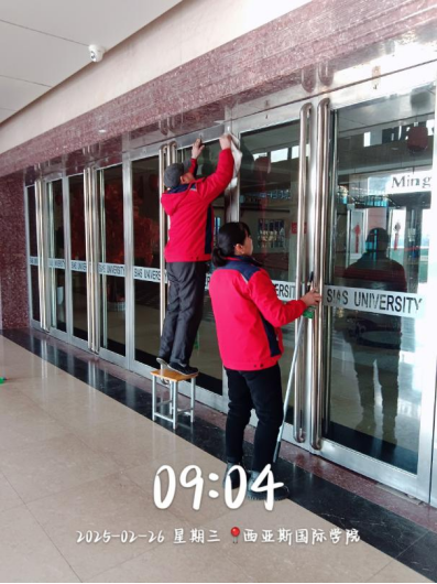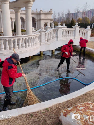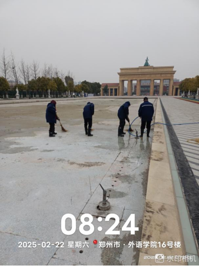 十五、对校园环境进行了CUBA玻璃清洁、北水系清洁、室外标识系统擦拭、地面冲洗、法国园人工湖清洁、室内3米以下附属物擦拭、死角卫生清洁、图书馆南喷泉底部清洁等工作。