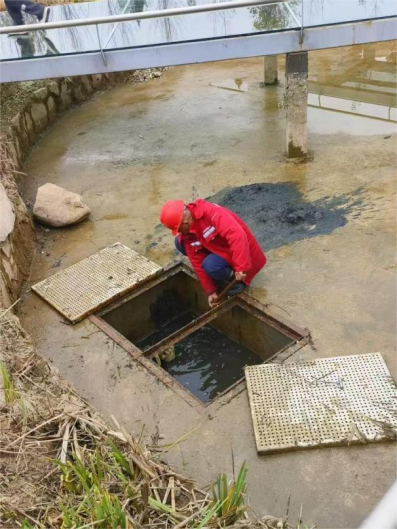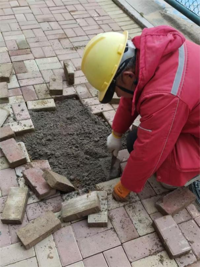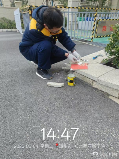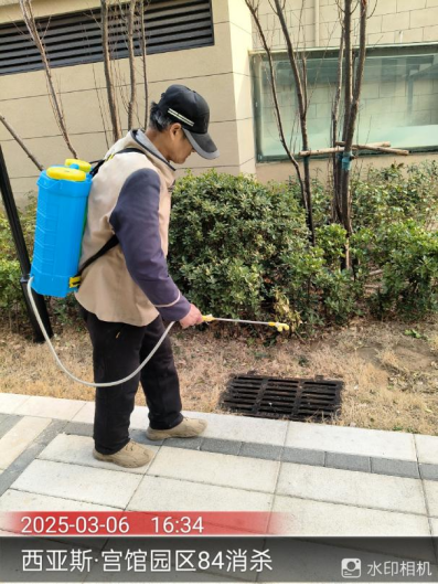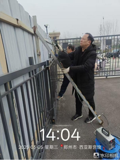 十六、宫馆项目开展了消防通道门维修、污水泵浮球阀维修、地库口石材维修、售楼部围栏维修、地库口雨水篦子清理、配合学校打扫安保值班室卫生、园区84消毒、消防设备巡检等工作。