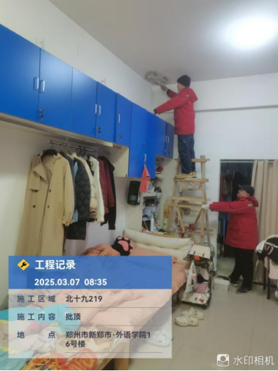 四、西区十号宿舍楼改造:拆除完成90%;垃圾运输60%;水电改造完成60%;家具搬移完成50%。