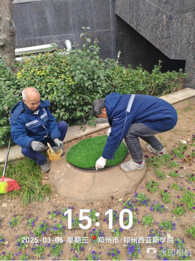 十三、对校园绿化进行了病虫害防治打药、大风天气刮倒苗木紧急处理、麦冬栽种、乔灌木修剪、落叶清理、枯枝清理、井盖粘贴假草皮、树根清理等工作。
