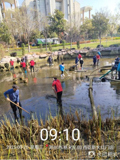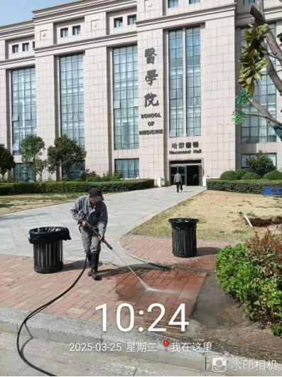 十五、对校园环境进行了道沿除草、地面冲洗、高空除尘、驾校区域清洁、田径场北侧清洁、图书馆星光厅书架清洁、中国园水系清洁、行政楼西侧人工湖清洁等工作。