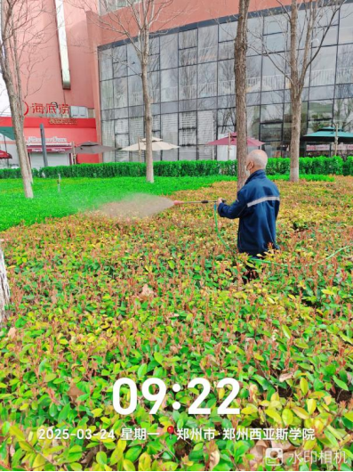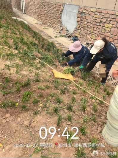十四、对校园绿化进行了病虫害防治打药、翻土整地、麦冬栽种、乔灌木修剪、移石像、移栽苗木、杂草清理、中国园睡莲栽种等工作。