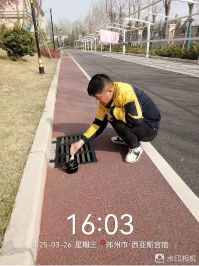 十六、宫馆项目开展了安装空调外机护栏、雨水篦子刷漆、泵房照明维修、园区绿化灌溉、园区草坪拔草、配合社区民警上门走访、非机动车道闸系统现场沟通安装、小区义诊活动等工作。