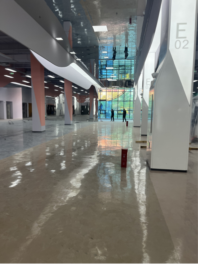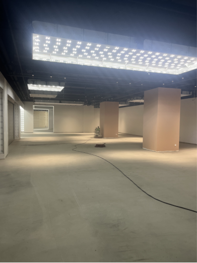 五、19号楼一层展厅装饰项目:所有基层已全部完成,等待平面设计方案,开始铺设塑胶地板。