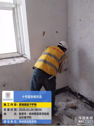 四、西区十号宿舍楼改造:上下水施工完成90%;卫生间防水完成50%;卫生间墙面抹灰完成100%;地板砖到货。