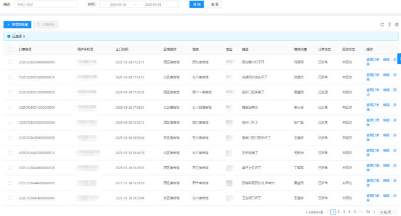 一、03月22日-03月28日17:30,客服部共接到891条报修并及时安排人员处理。