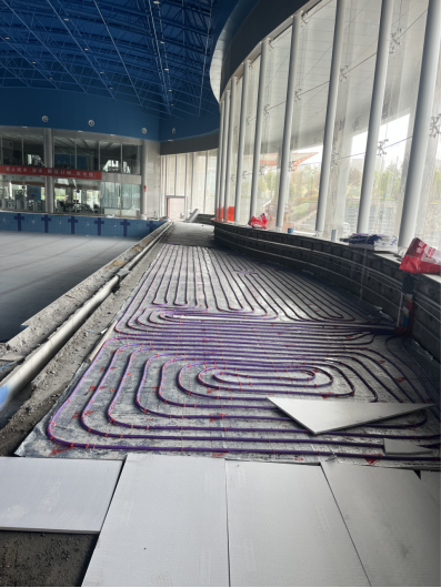 三、游泳馆改造项目:更衣室吊顶完成50%;泳池区域地坪找平完成,开始铺设地暖;铝板安装完成70%。
