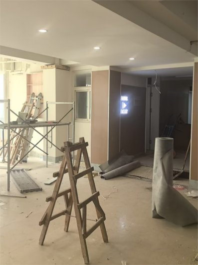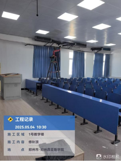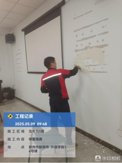 二、西区十号宿舍楼改造:外立面公区乳胶漆完成90%;消防灯具安装完成;门套不锈钢完成;成品套装门安装完成;卫生间台面安装90%;铁床安装完成;灯具安装完成。