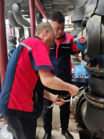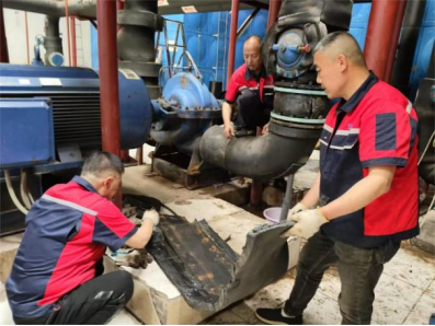 十四、能源服务部为确保夏季供冷,对西区机房更换管道软连接,东区机房加固房顶、各区机房热水主机更换开关电源确保空调、热水安全供应。